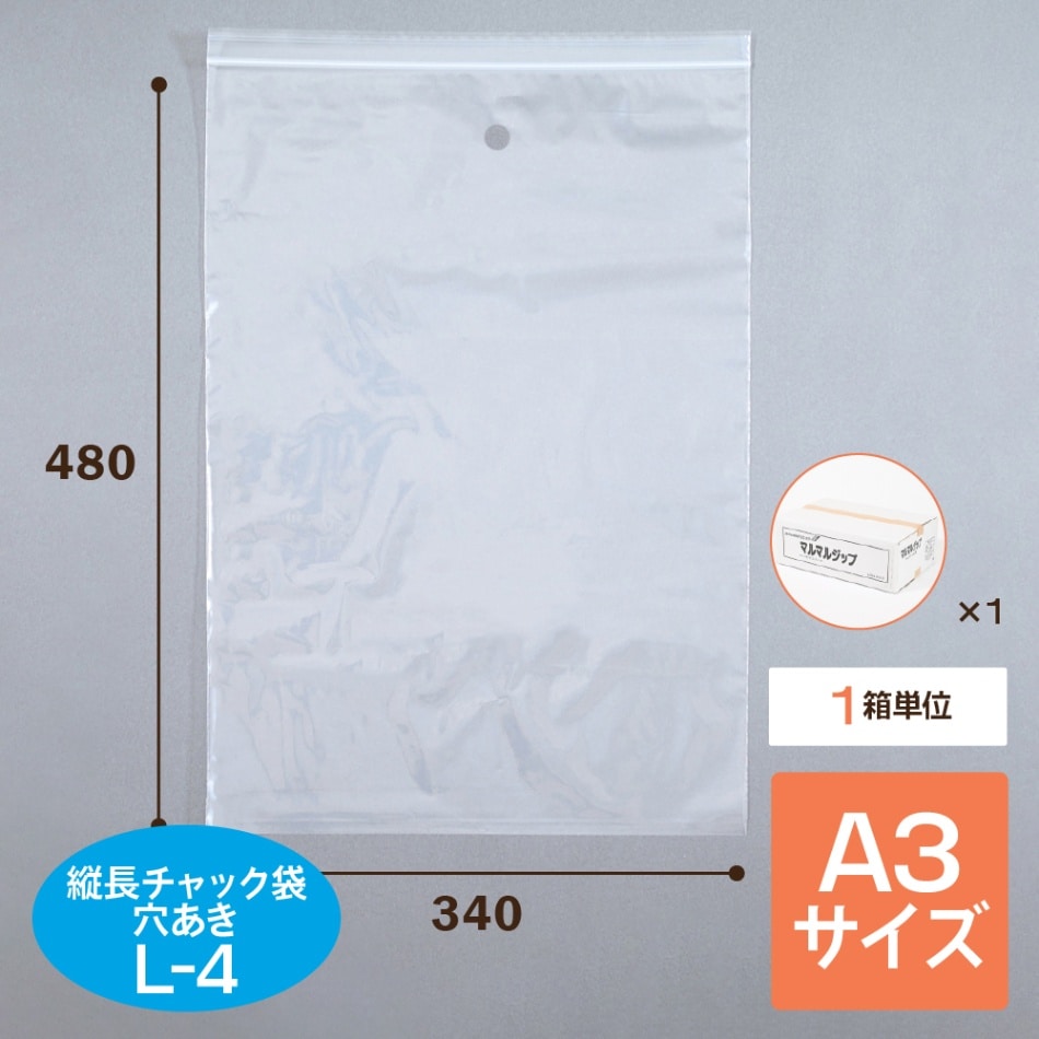 チャック袋 マルマルジップ穴あきA-4 1箱/13,500枚