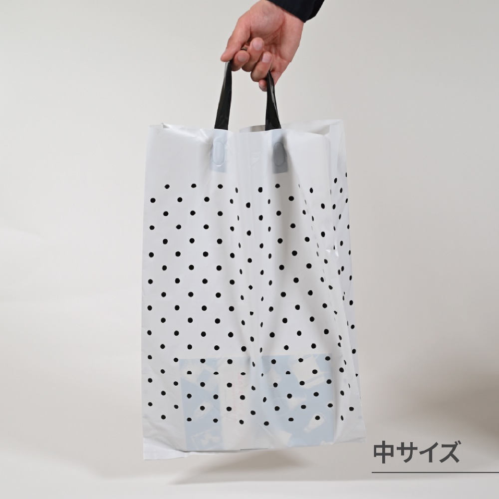 丈夫なHDPEタイプ(高密度ポリエチレン)のファッションバッグです。