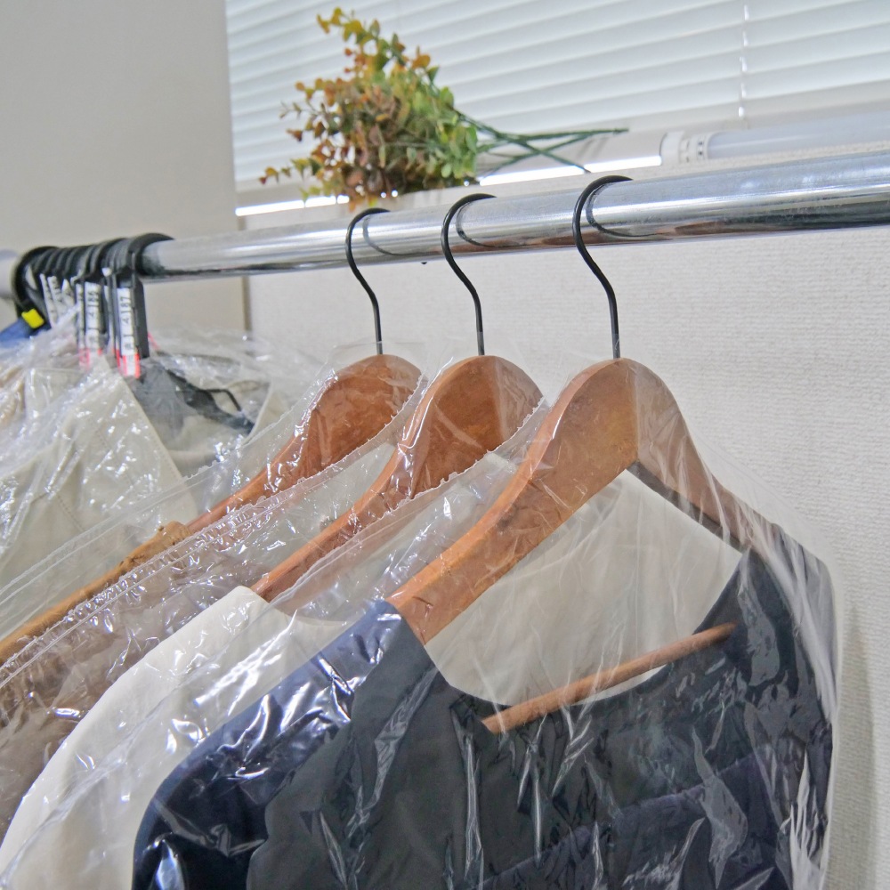 ハンガーに通して服をカバーするタイプでクリーニング店などでよく見かける衣類カバーです。