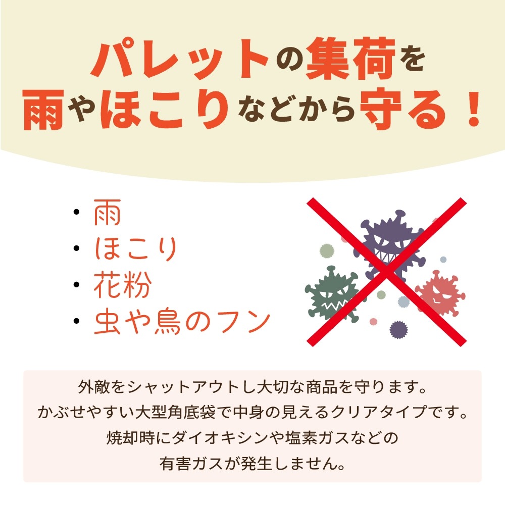 かぶせやすい大型の角底袋で中身の見えるクリアタイプです。