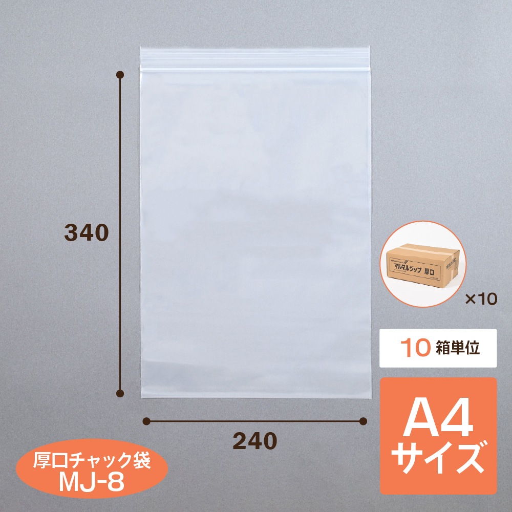 | マルマルジップ厚口 MJ-8(10箱売り) | LDPE | 0.08mm | 240mm | 340mm | 9.34円 | 8,000枚 | 82,240円 |