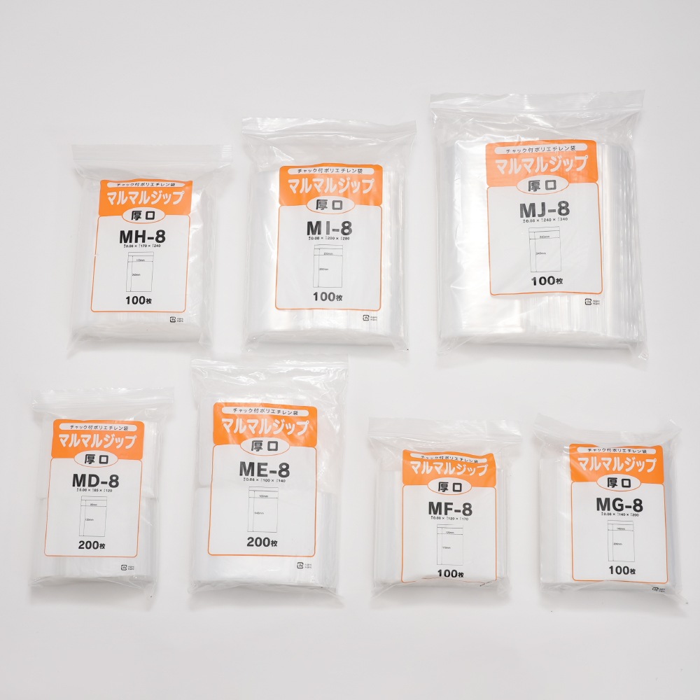 | マルマルジップ厚口 MG-8(10箱売り) | LDPE | 0.08mm | 140mm | 200mm | 3.53円 | 25,000枚 | 97,250円 |