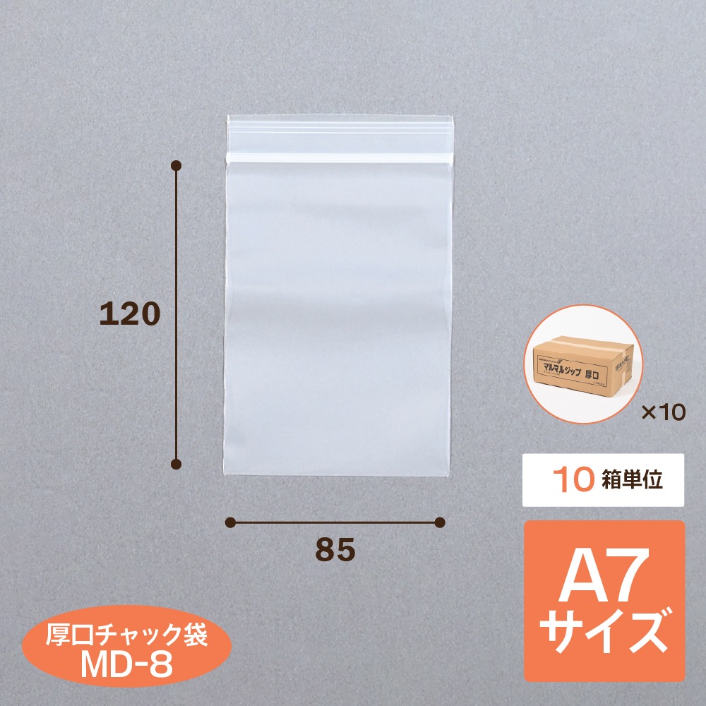 | マルマルジップ厚口 MD-8(10箱売り) | LDPE | 0.08mm | 85mm | 120mm | 1.49円 | 60,000枚 | 98,401円 |