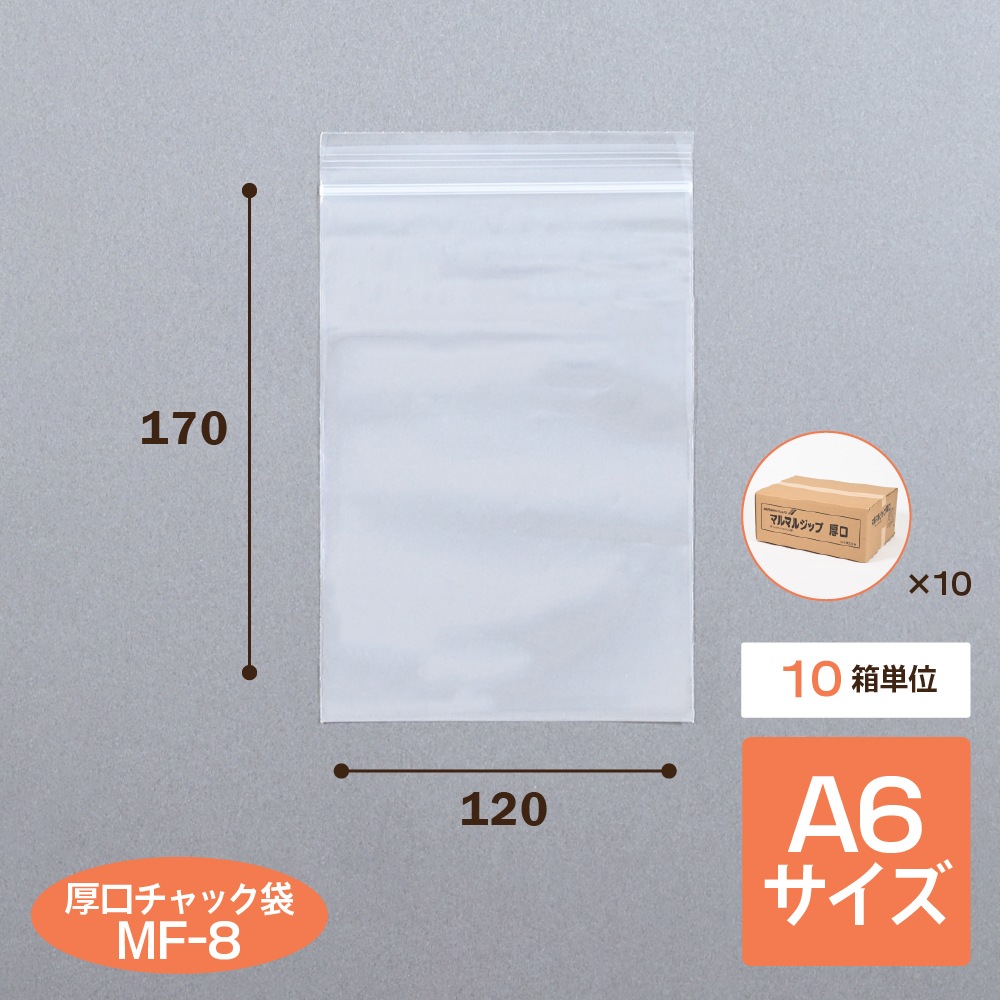 | マルマルジップ厚口 MF-8(10箱売り) | LDPE | 0.08mm | 120mm | 170mm | 2.68円 | 30,000枚 | 88,501円 |