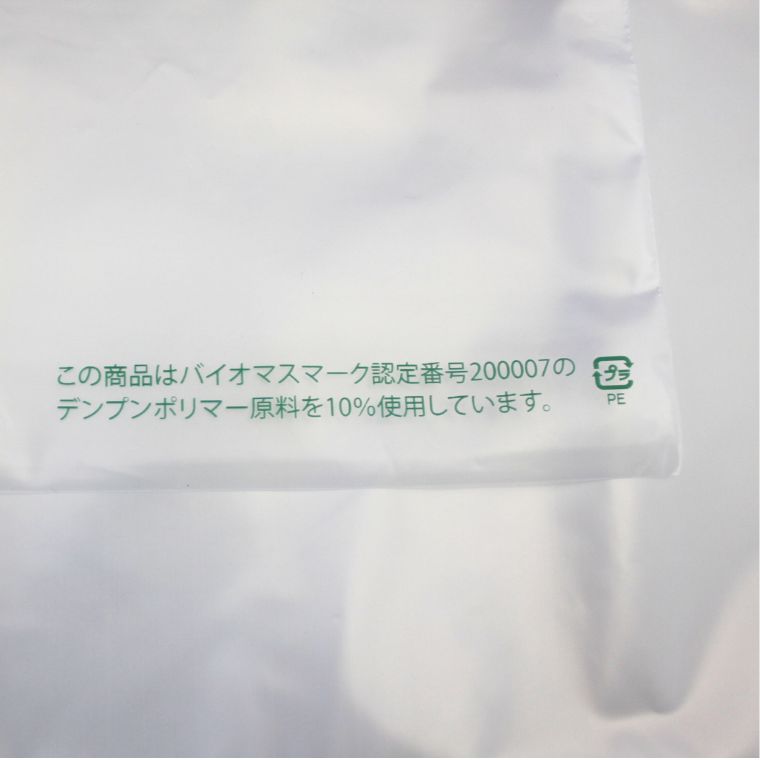 バイオマス原料を使用した、環境にやさしいチャック付きポリ袋です。